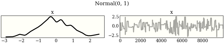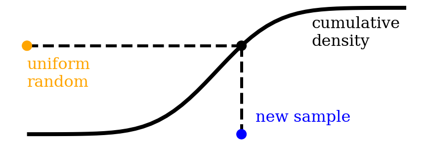 $$ u \sim \operatorname{Uniform}(0, 1) $$ $$ \text{solve } \int_{-\infty}^x p(t)~dt = u $$